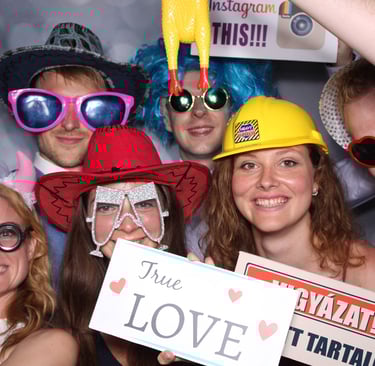 With its special, funny accessories and unique backgrounds, the Photo Booth guarantees the fun of creative photography. The unique collages can be decorated with the event, company logo, name, event date, practically anything.